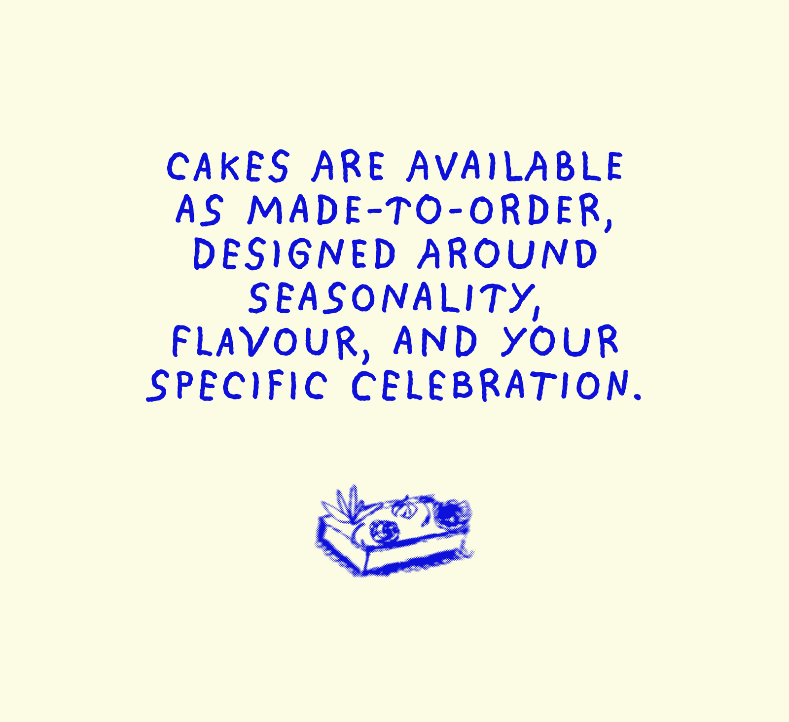 Wedding cakes are ordered via our Studio page — please submit a request through the form there!
